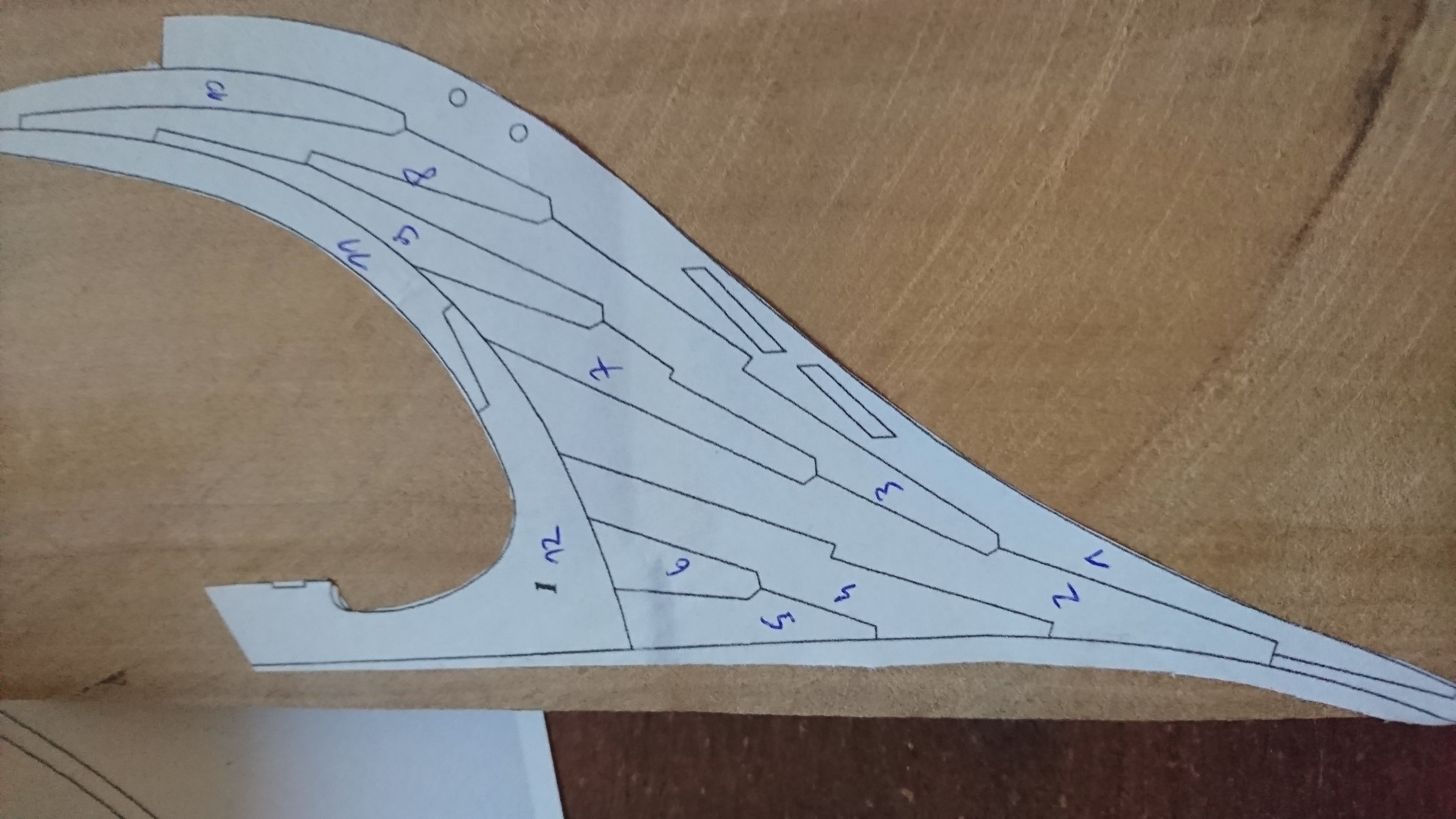 Wyklejanie skończone. Słabo ostatnio z czasem więc i postęp nie duży. Niestety przy tej ilości jaką mam wolnego robienie dziobnicy z nastu oddzielnych elementów nie wchodzi w grę. Będzie to jeden element przykryty fornirem lub zrobiony w jakiejś innej upraszczającej technice.