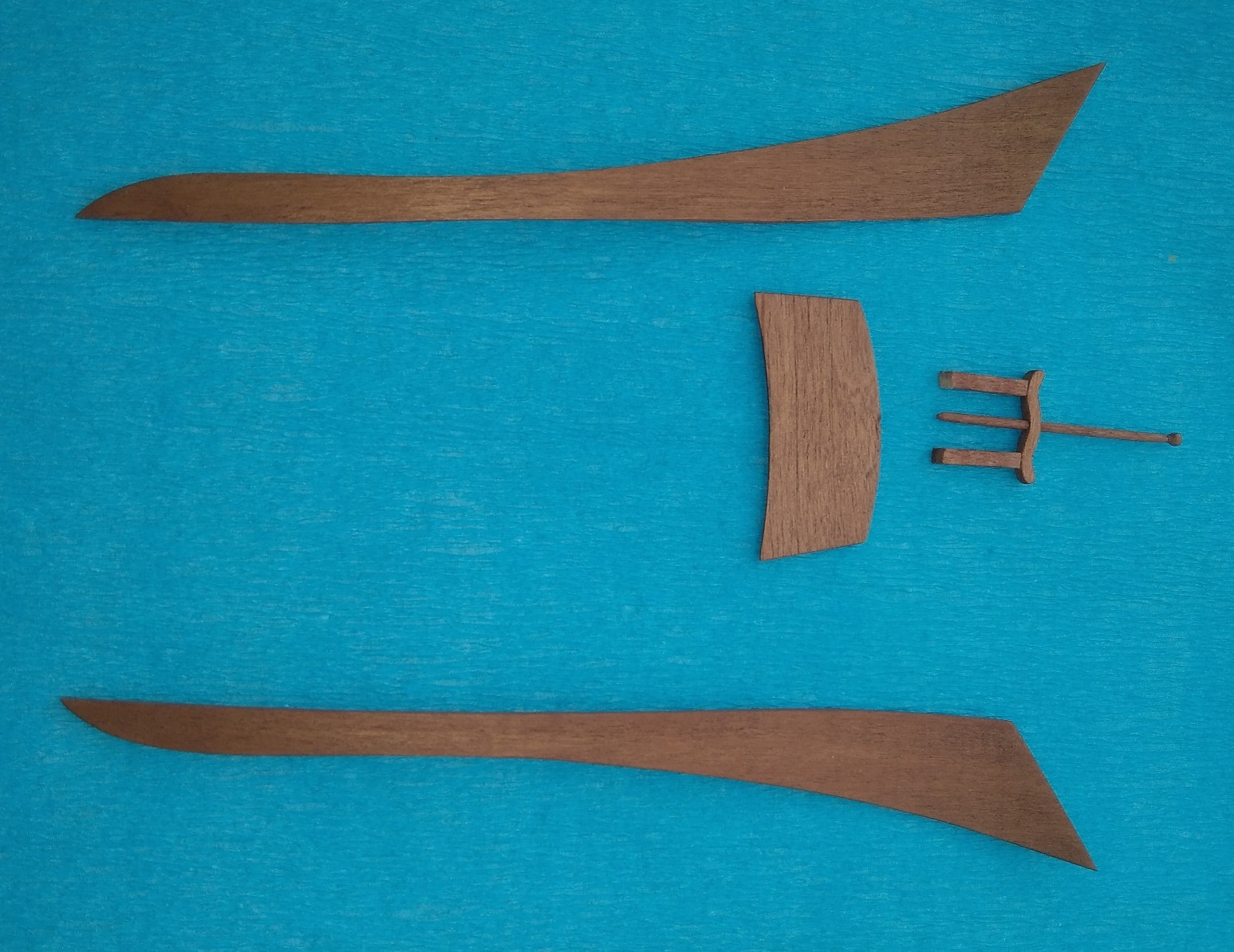 Knagi przyklejone w dolnej części masztu zrobione są z obłogu gr 1,8mm, wypiłowane iglakiem.