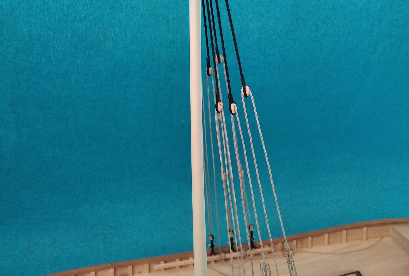 Po dłuższej przerwie coś udało się wydłubać. Tym razem olinowanie masztu.