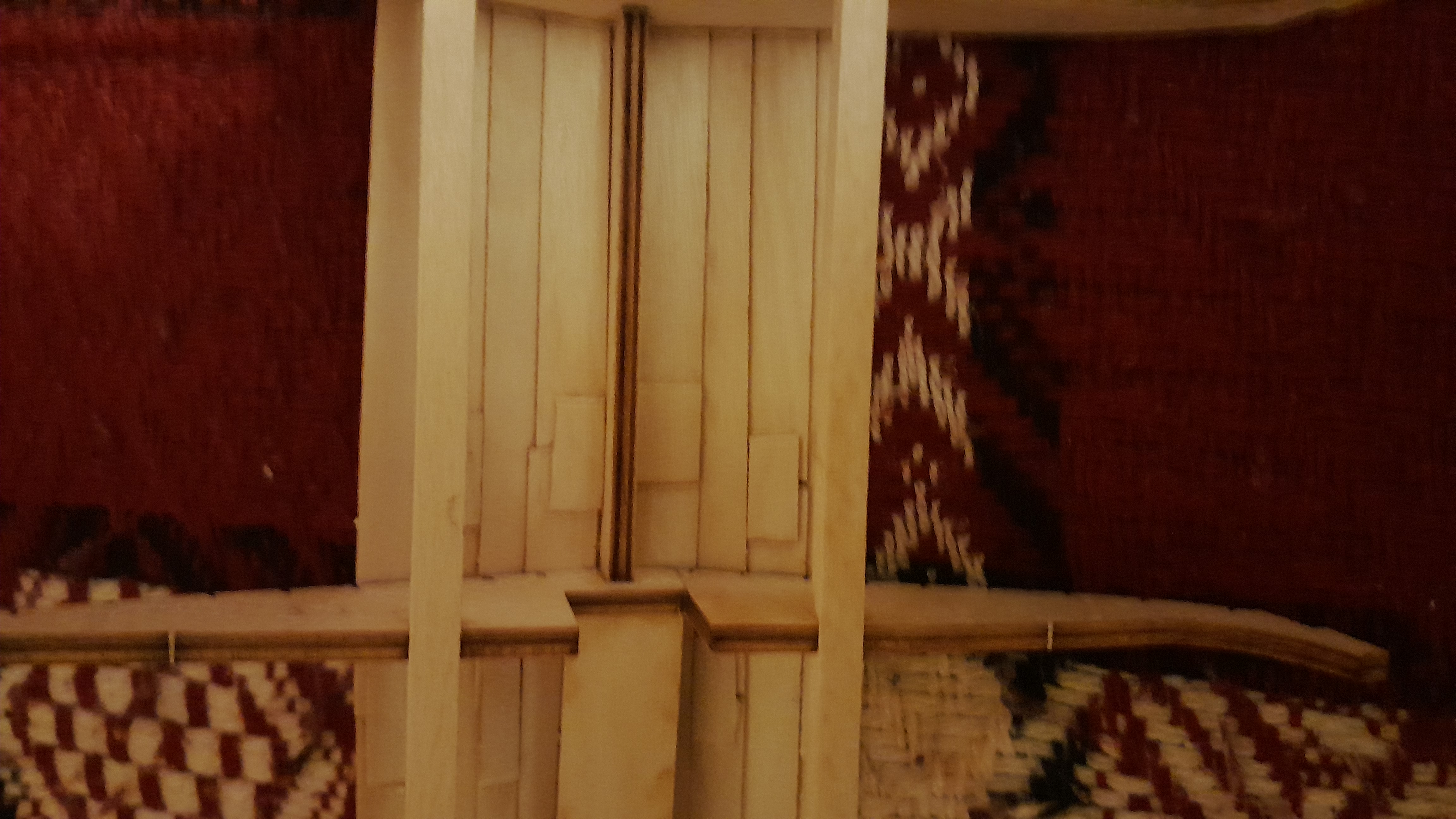 No i fajnie jest... Teraz musisz pamietac, by delikatnie i precyzyjnie zeszlifowac krawedzie wszystkich wreg (grodzi), szczegolnie te na dziobie i rufie tak, by kazda z planek polozona na szkielecie kadluba, przylegala do nich (grodzi) na calej ich grubosci - patrz zalaczona fotka.