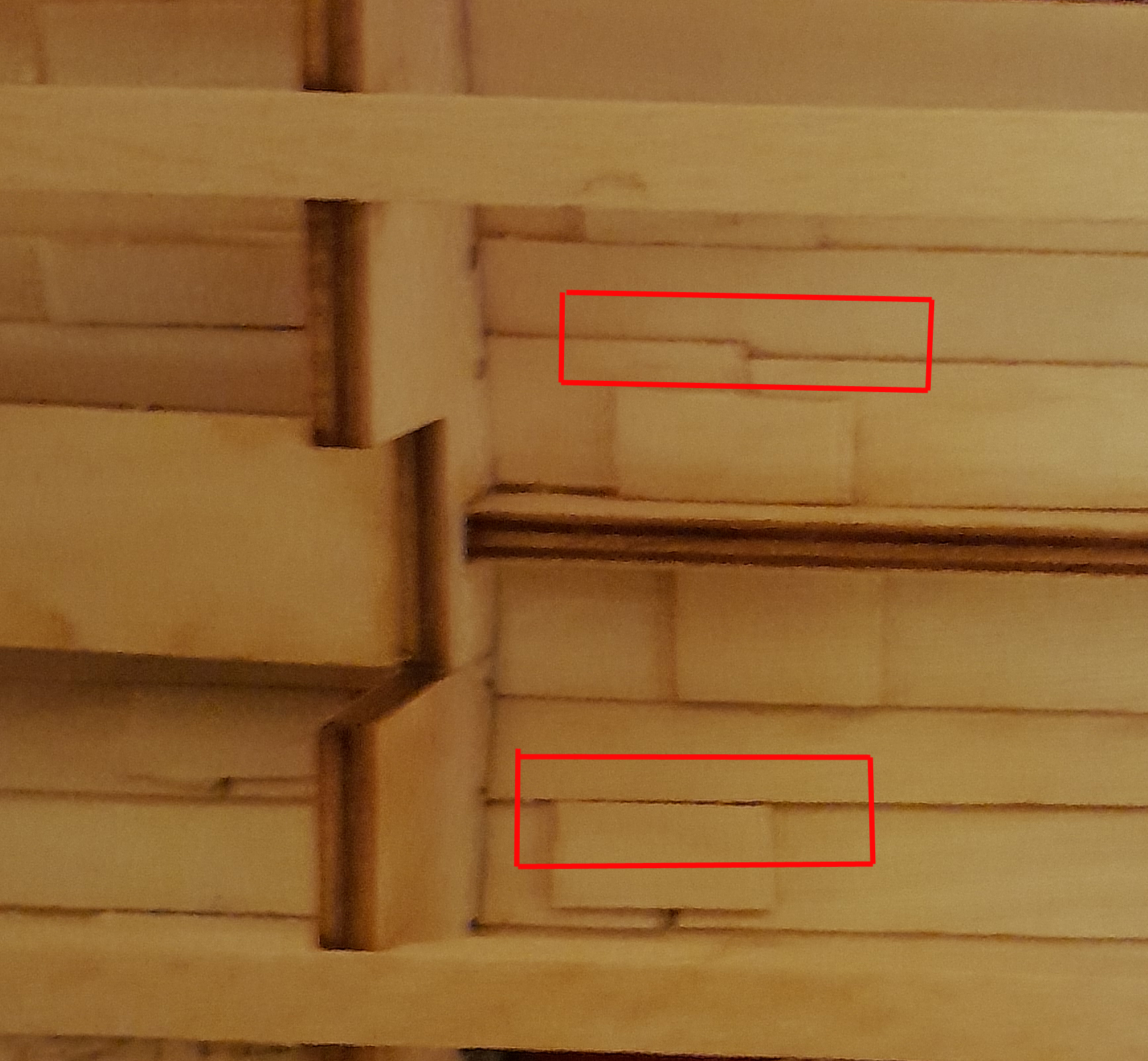 Nie mylisz się. Ale kolega kładzie poszycie prawidłowo. Zdjęcia mogą mylić, bo nie są idealne (tło do czterech liter, ostrość ciut szwankuje i zastosowane oświetlenie spłaszcza obraz, nie uwydatnia nakładania się na siebie desek poszycia). Zwróć uwagę na zaznaczone przeze mnie fragmenty - widać na nich, że jest to zakładka