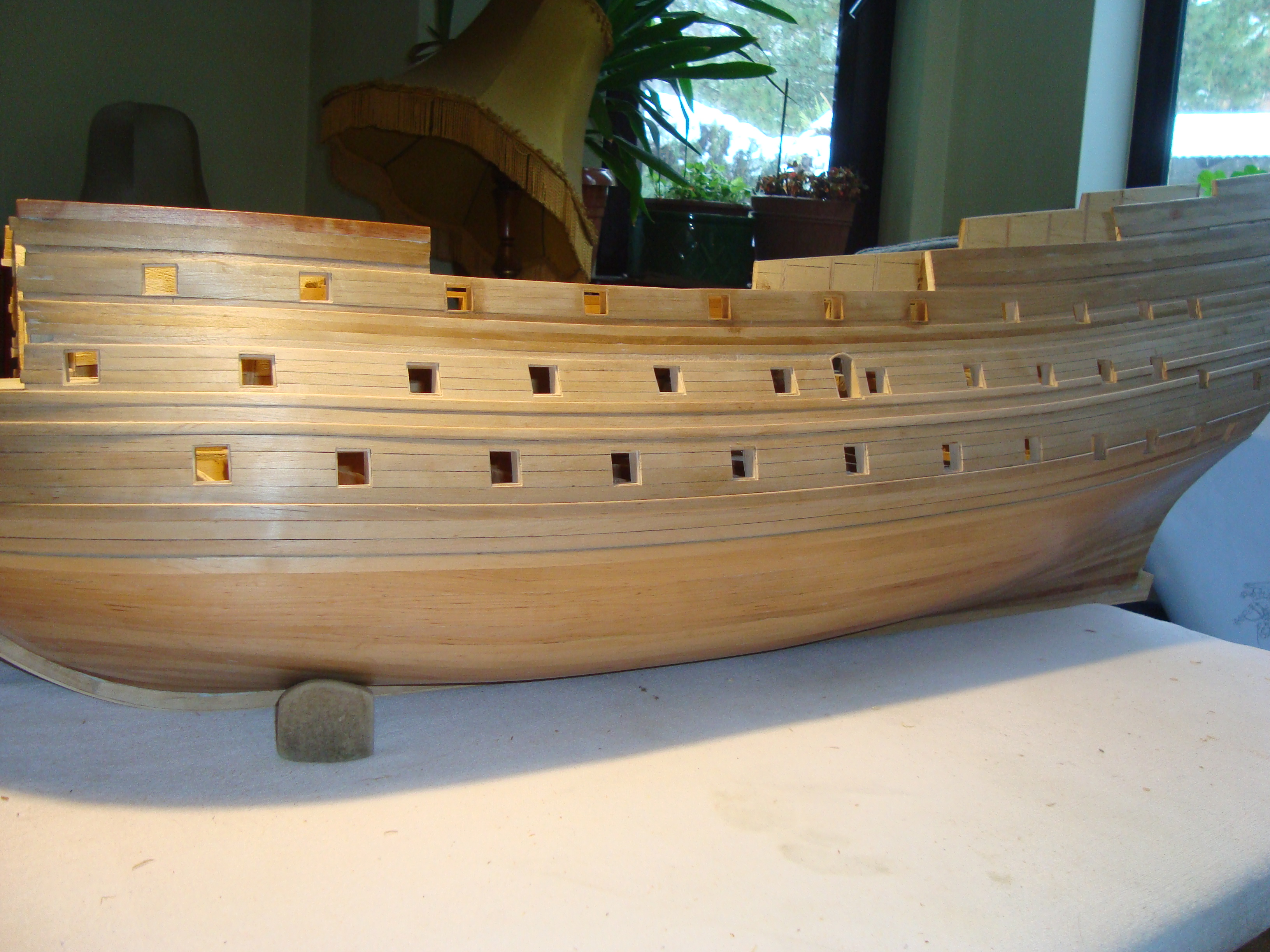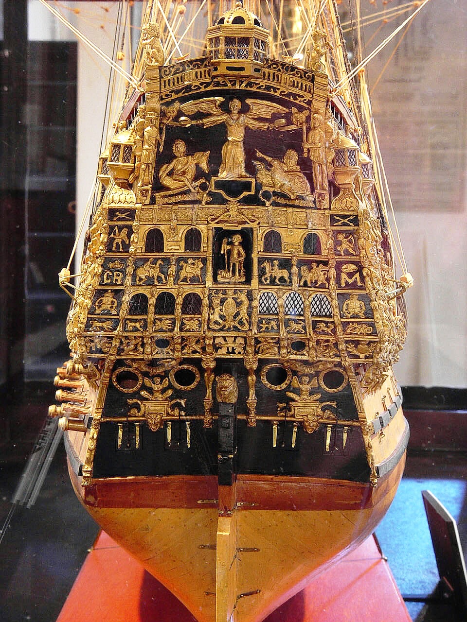 Swego czasu znalem pewnego Kanadyjczyka, niejaki Bill Short, ktory tez zdecydowal sie na budowe tego modelu, ale tylko w luznym oparciu zestawowych planow, reszte poteznie samemu modyfikowal. Glownie na podstawie dwoch roznych ilustracji - jedna to rufa z obrazu Petera Lely'ego, a druga to obraz-rycina Payne'a, przedstawiajaca okret w widoku bocznym.
