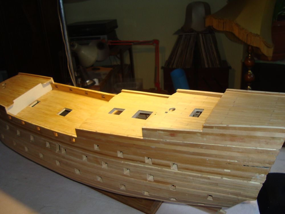 Na razie jakoś idzie a potem pomyślę .Zastanawia mnie jedna rzecz brak pięknej dzwonnicy .Czy to przeoczenie konstruktora czy tak ma być .Na wszystkich okrętach z epoki są .Na tym etapie budowy już nie byłbym w stanie taką zbudować .R