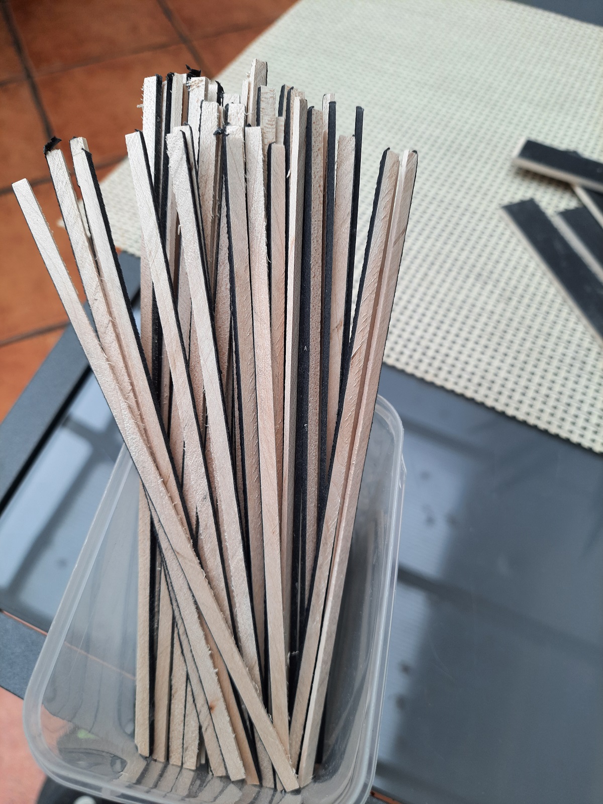 deseczki oklejone czarnym papierem