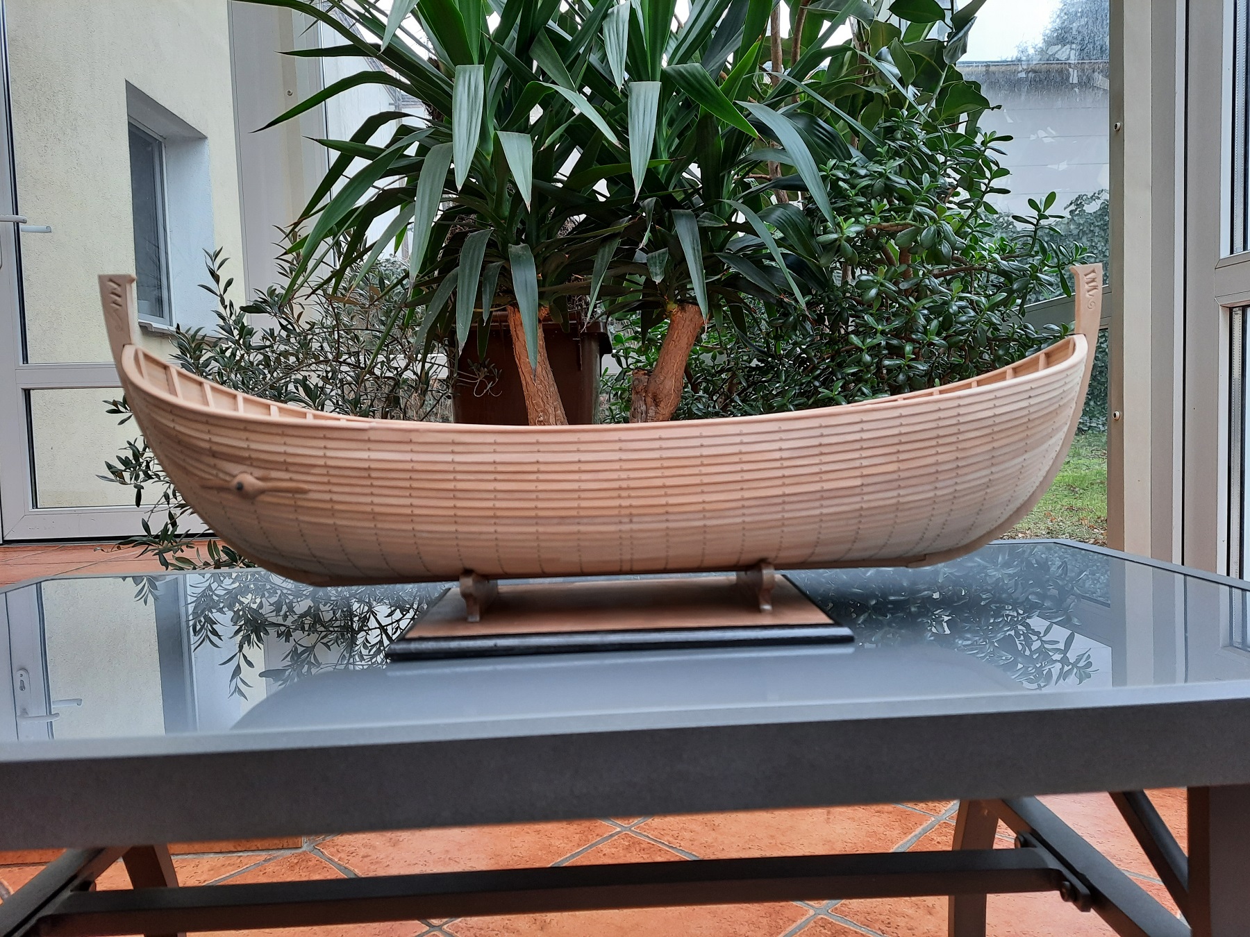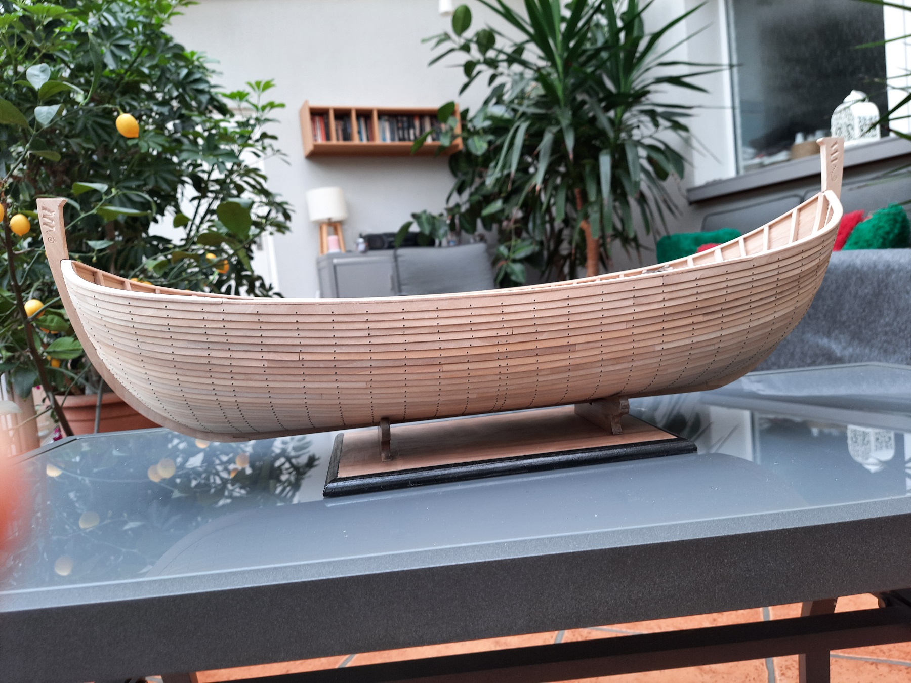 Do Rafała. Kopyto nie jest dzielone i nie będzie usuwane. To jest jedynie pozorowanie szkoły wikingów. Nie posiadam odpowiednio precyzyjnego wzornika kształtów by umieszczać w skorupie wręgi a poza tym lubię modele " mocne" by bez obaw można było napinać liny.