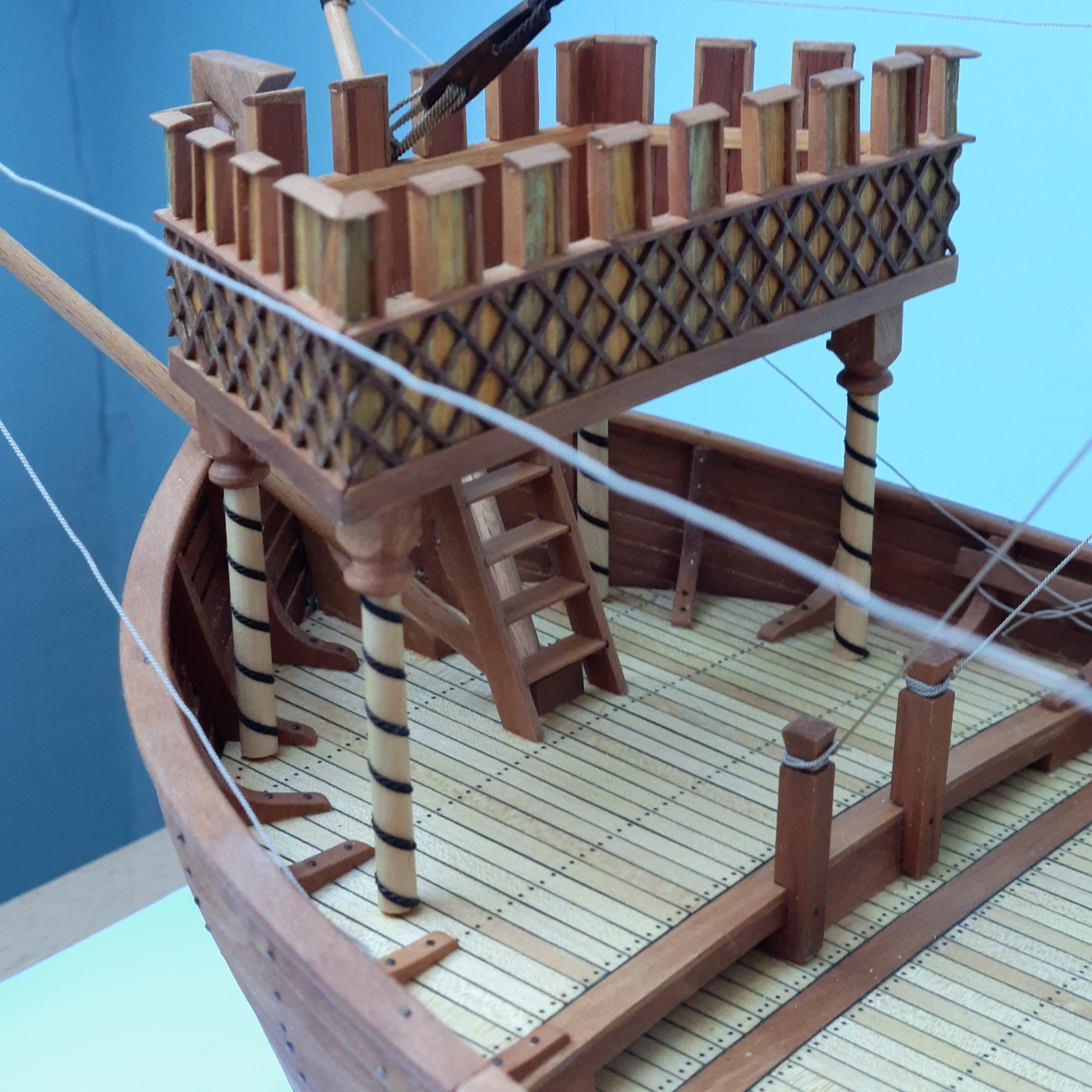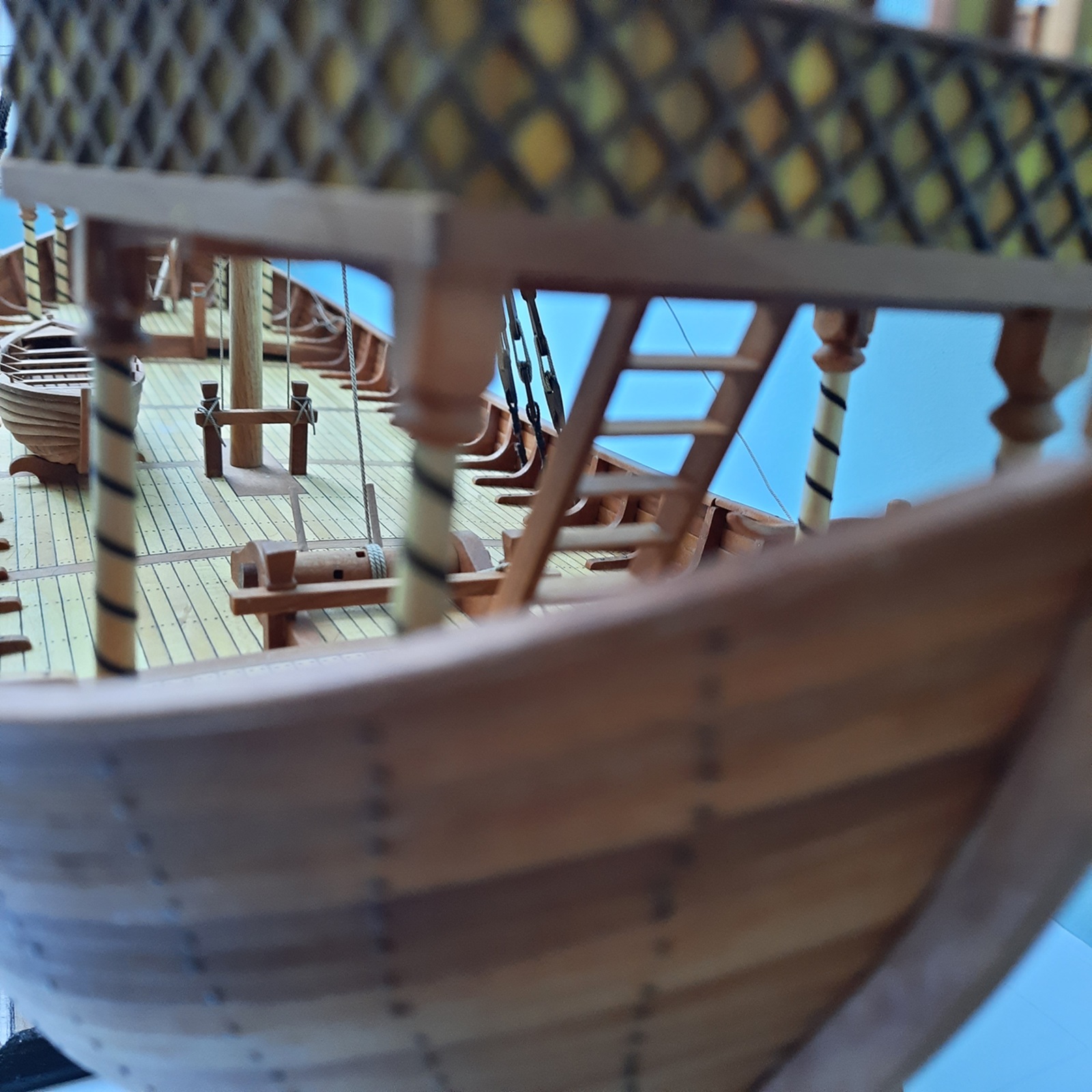 Z tym perukowcem to sprawa jest prozaiczna. Dawno temu w ogrodzie przydomowym wsadziłem sporo różnych drzew i krzewów które z czasem się rozrosły i zbytnio zagęściły. Zaszła potrzeba usunięcia znacznej ich części a że wpadłem w modelarstwo szkutnicze to grubiznę pozostawiam i testuję. Wynika to również z założenia że w modelach nie używam farby (z wyjątkiem czarnej) a jedynie olej do konserwacji. Barwy w modelu szukam w różnych gatunkach drewna i tak w nefie mam już 7 różnych gatunków drewna. Pozdrawiam Janek