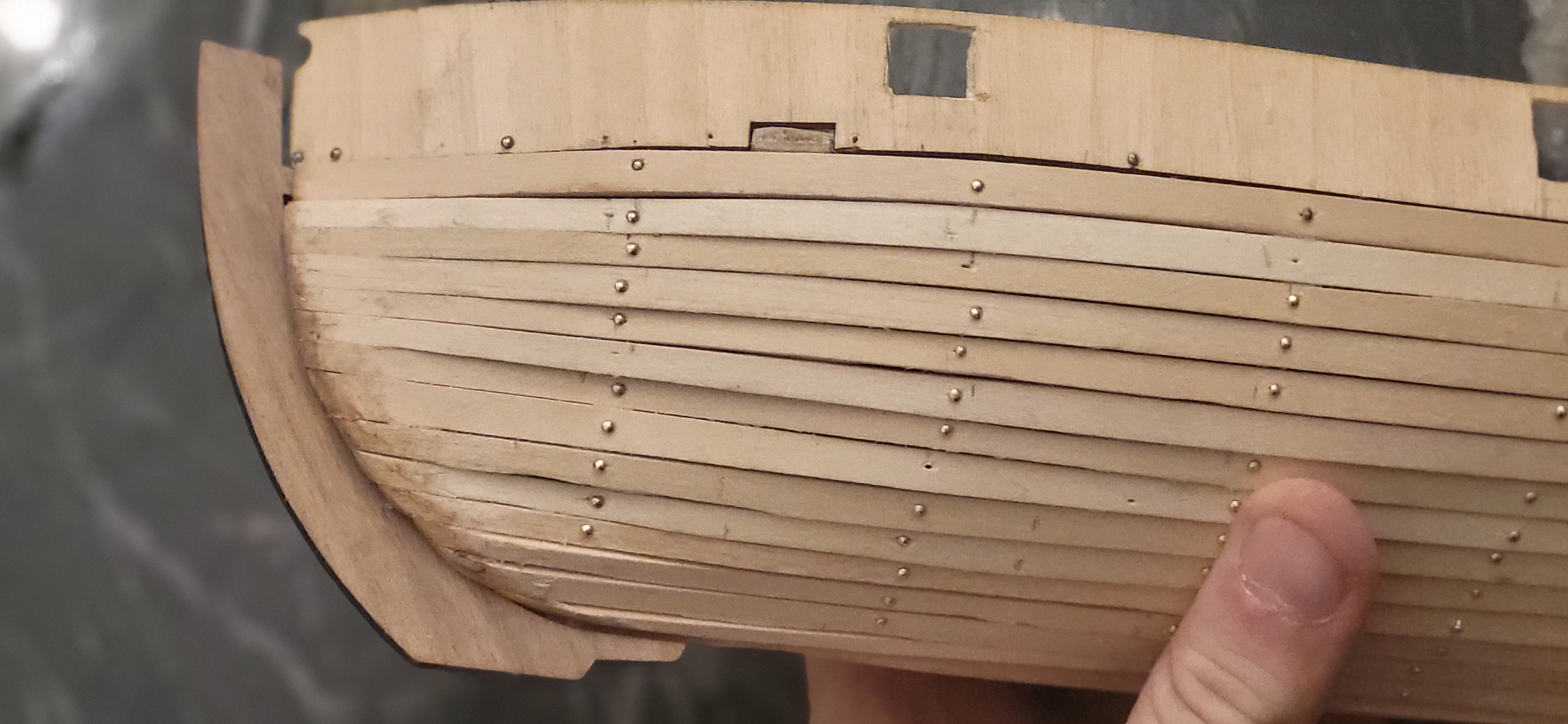 Teraz gwózdki nożem do tortu i kleszczami i całość do szlifowania, zastanawiam się czy zrobić drugi raz deskowanie ale raczej zrobię to dobry trening będzie: całe deseczki są, dziub uratowany, wykonanie mierne ale z plusem :lol: szlifowanie pewnie ukryje trochę niedociągnięć :roll: