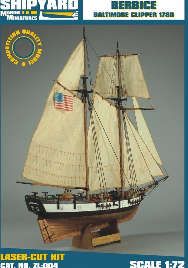 Berbice (w załączeniu) to dwumasztowy szkuner rejowy i klasyczny kliper baltimorski. Posiadał ożaglowanie gaflowe, a wspaniałe jachtowe kształty kadłuba pozwalały na rozwijanie dużych prędkości. Uzbrojenie obejmowało 8 armat 4 - funtowych, 8 falkonetów 3/4 - funtowych i broń mniejszego kalibru. Był groźną jednostką dla statków handlowych i transportowych. Zbudowano go w 1780 roku, a w 1782 lub 1783 zakupiony został przez brytyjską Royal Navy. Po około 12. latach służby na morzu rozbił się u brzegów San Domingo.