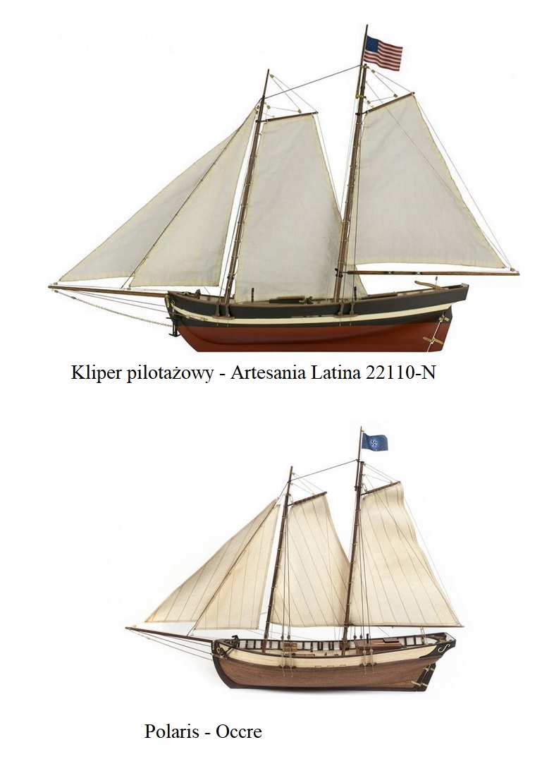 Kącik filozoficzny powstał w związku z tym, że porównałem sylwetkę i żaglowanie Polaris i klipra Swifta - w załączeniu porównanie (są dość podobne trzeba przyznać) i uległem przerażeniu jak to mój Polaris któremu buduje armaty bo ma być małym dzielnym drapieżnikiem - takim morskim Michałem Wołodyjowskim, a tu piszą, że służył do pilotowania statków do portu :lol: przy czym postarzana farba na mojej hybrydzie mogłaby wskazywać na emeryture i pilotowanie w porcie po dzielnych bojach, taki los bohatera :lol: