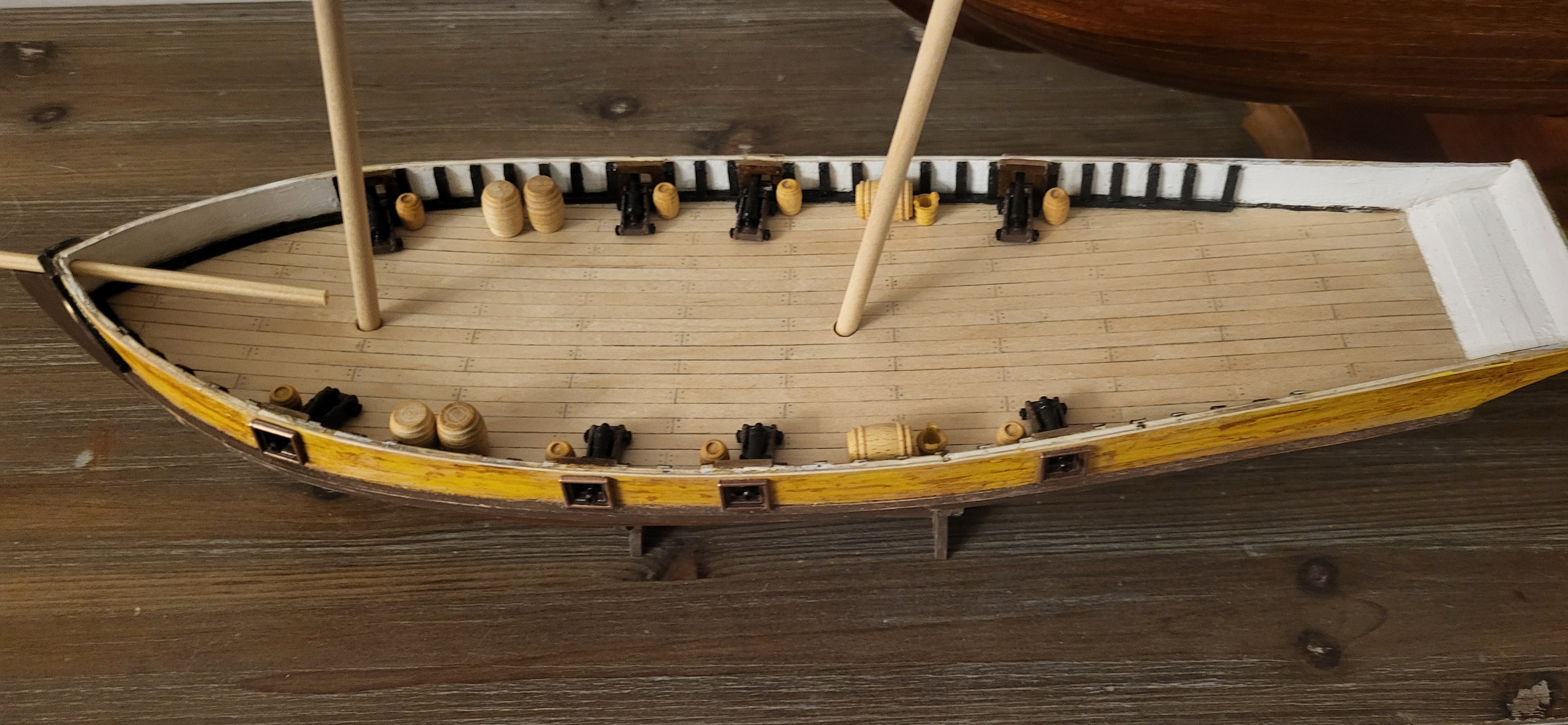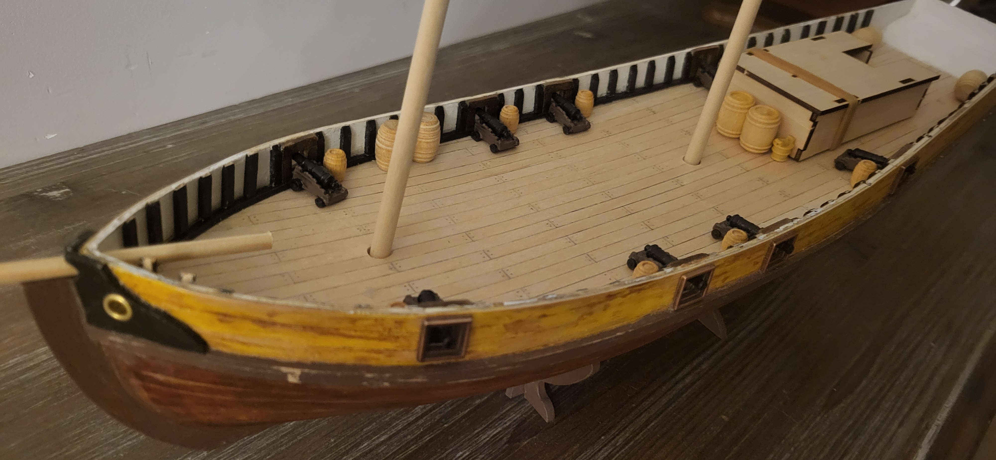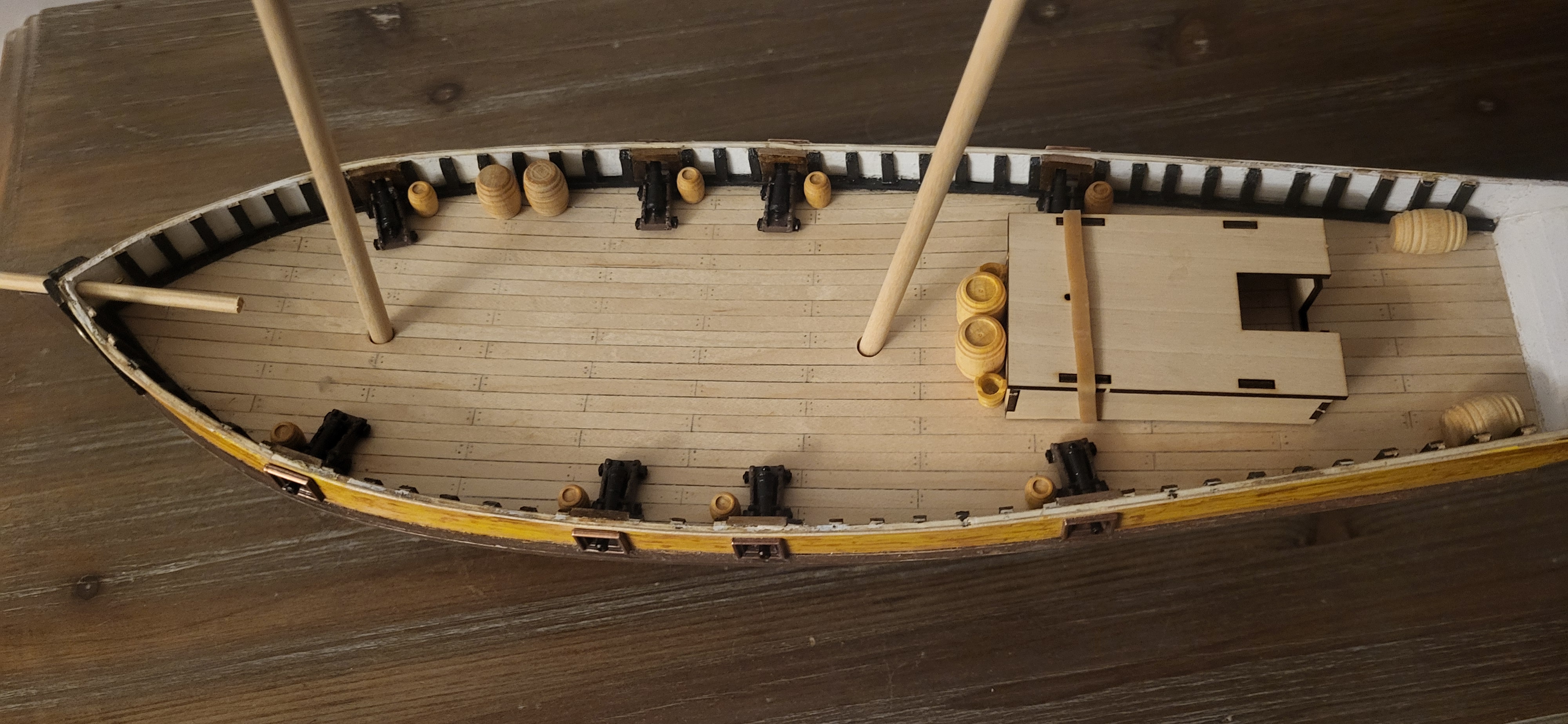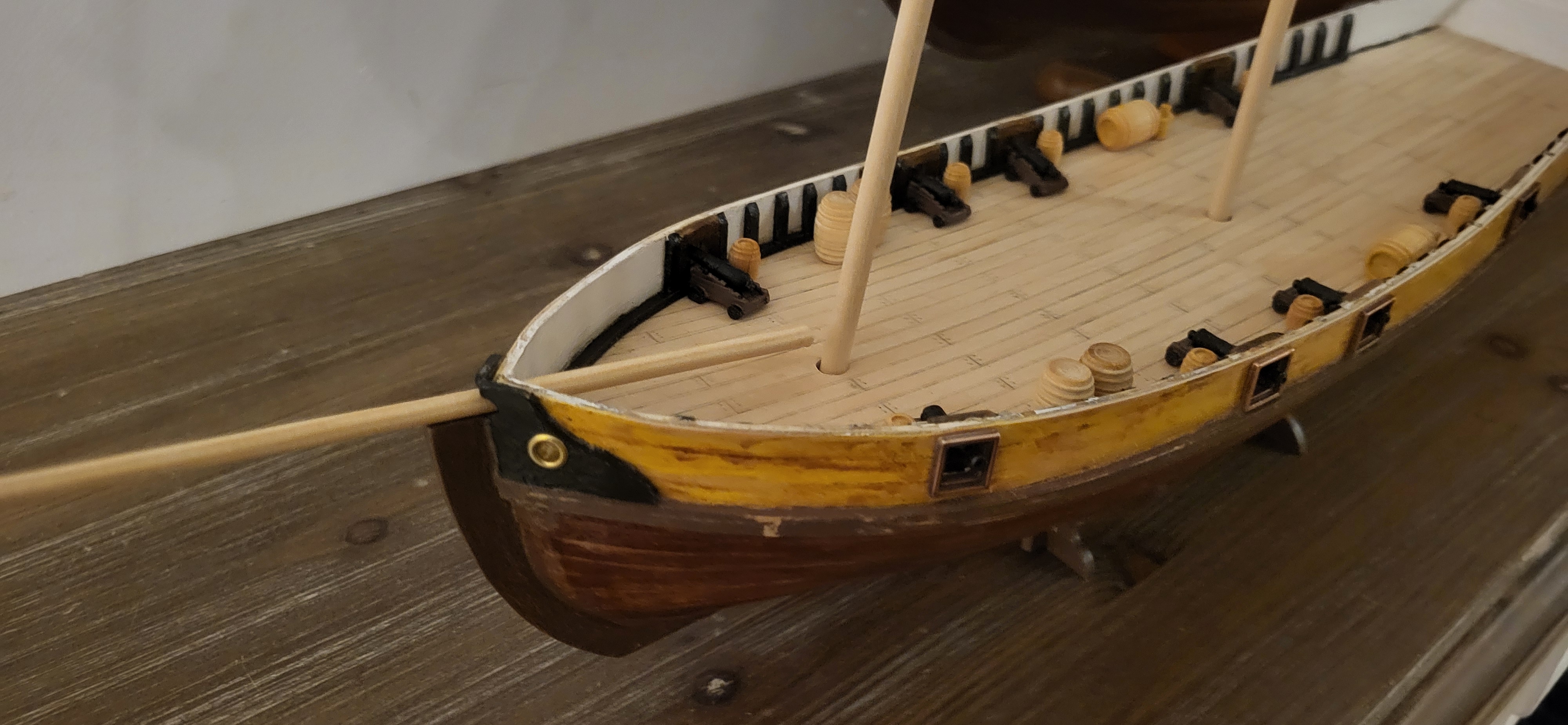 Jeszcze myślę nad tym miejscem czy zostawić, czy tu też coś zrobić/dorobić może być szalupa ratunkowa, beczki lub jakiś ładunek, pasuje coś w tym miejscu umieścić skoro to nie typowy szkuner handlowy tylko hybryda. Jeszcze nie mam pomysłu ale godzina młoda jeszcze