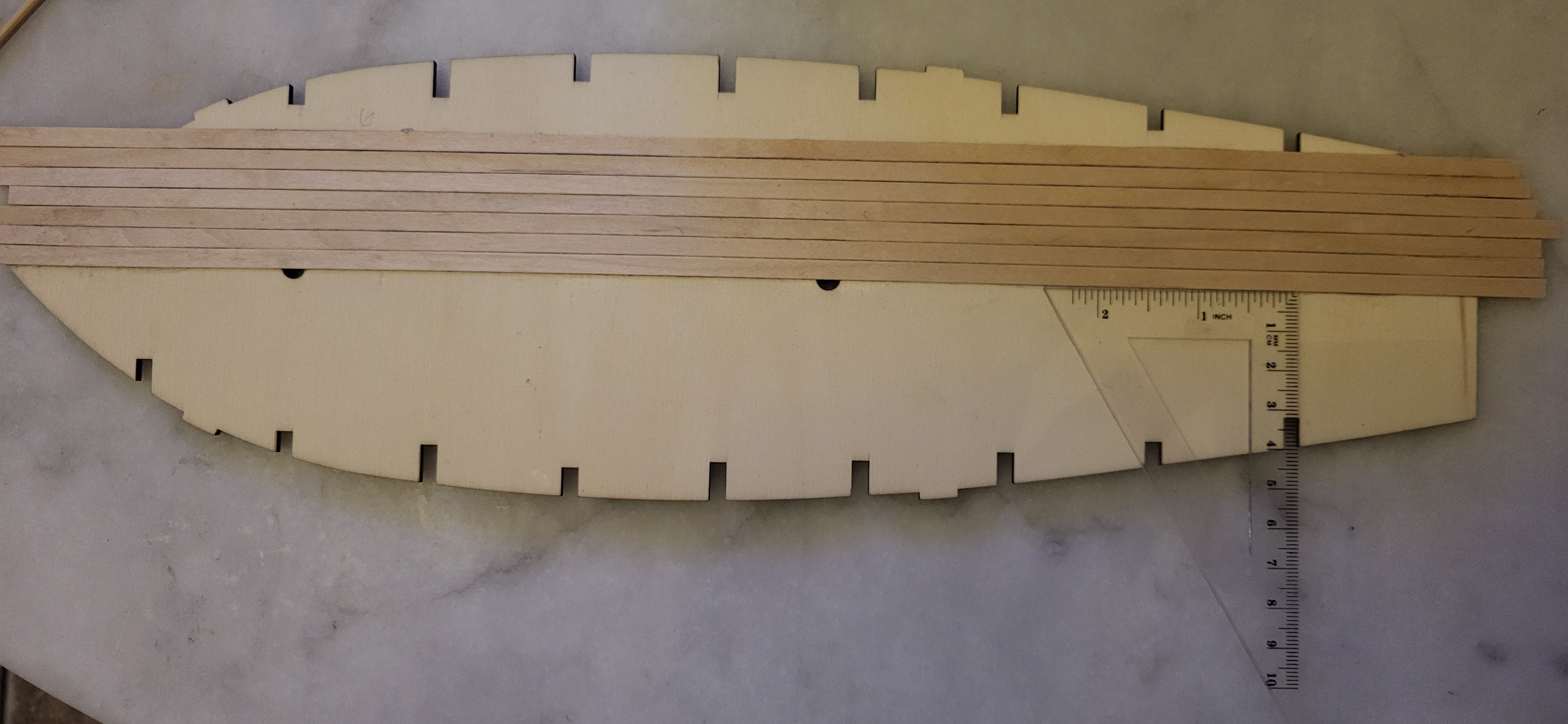 Rzeczywiście zasugerowałem się instrukcją i filmikami, ale chyba lepiej byłoby pociąć na odcinki np 6 cm i układać jak panele. W załączniku wstawiłem ich propozycję z rysowaniem linii i atrapy gwozdzi na której się wzorowałem, ale twój pomysł mógłby być efektowniejszy. Nie wiem czy na statkach są gwożdzie na pokładzie tak wbite?, jakoś mi to nie pasuje. W skrócie to ich pomysł był na malowanie linii i gwozdzi ołówkiem, a pożniej ich utrwalanie chyba lakierem, muszę to przetłumaczyć w translatorze. Mam już połowę, szkoda zrywać, jeszcze nad tym pomyślę.