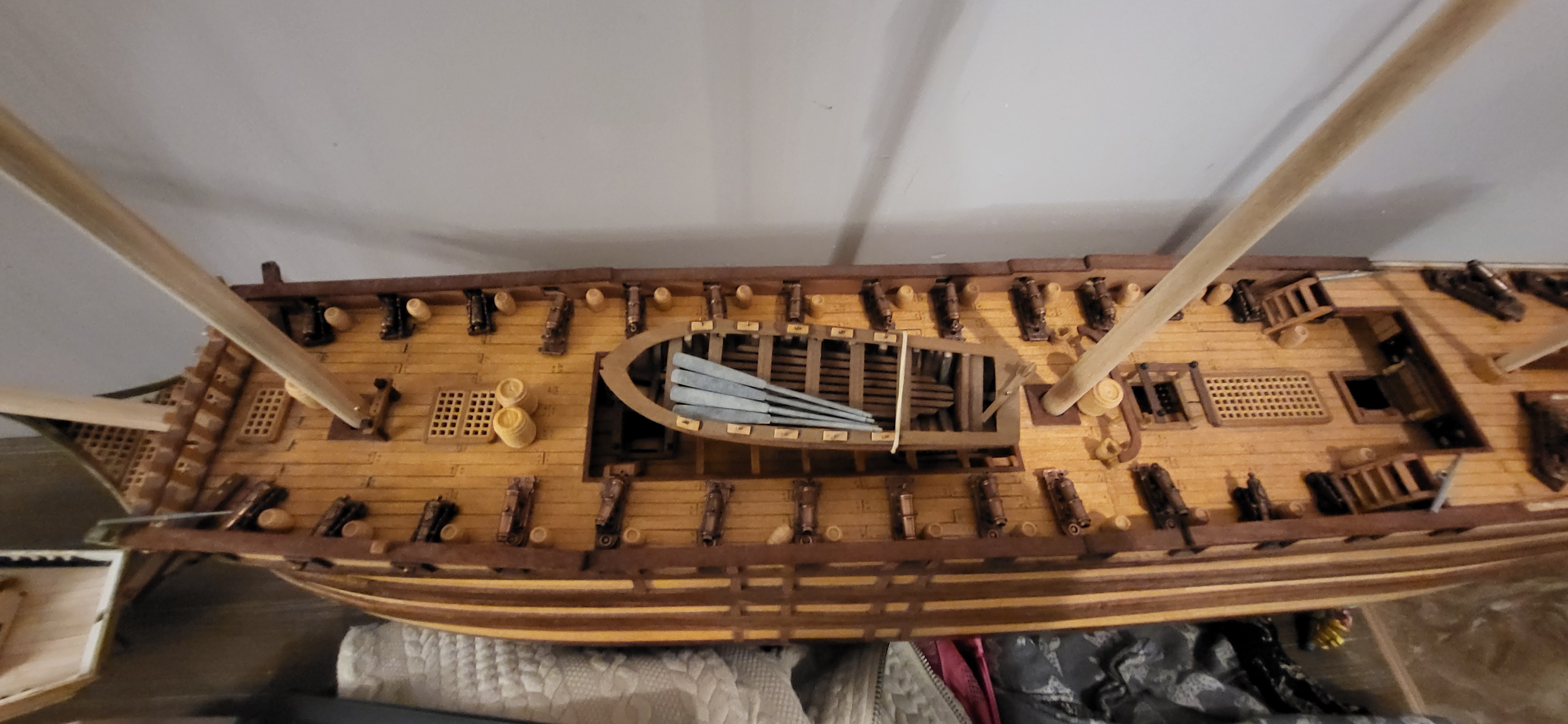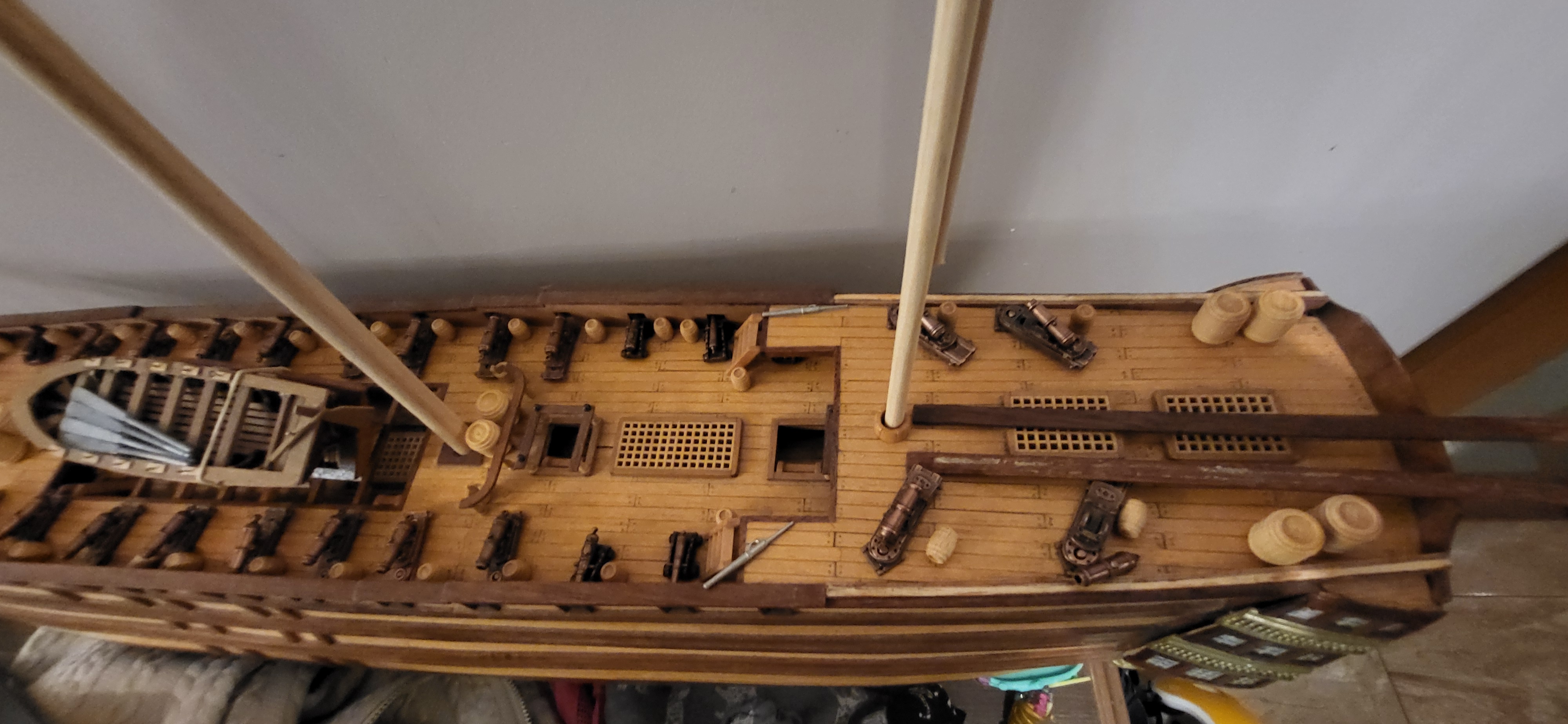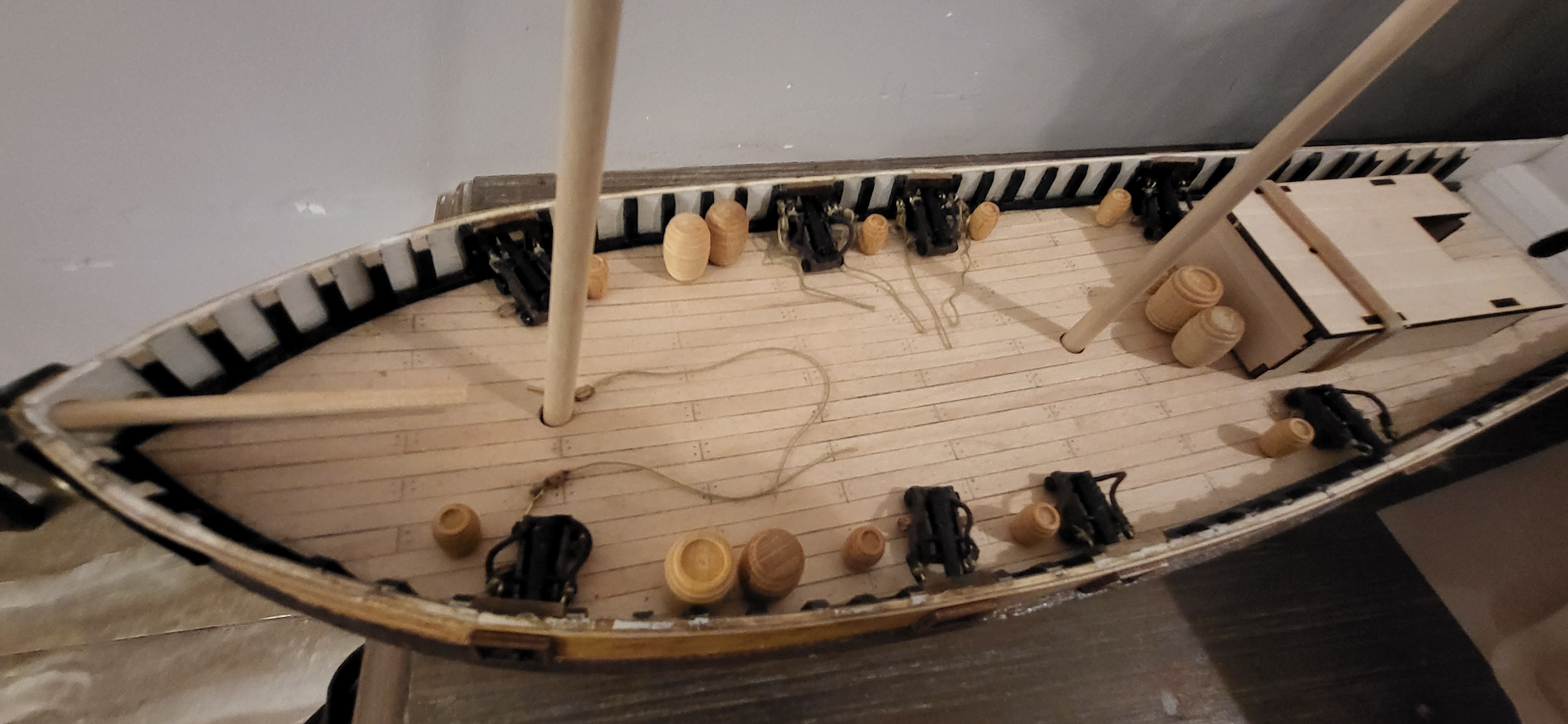 Zawalili mnie w robocie, że nawet stóp nie widać, wracam jak krasnalud z kopalnii ale już niedługo zerwę kajdany poniżej zdjęcia obecnego etapu polaris i niespodzianka na Santasima na jednym ze zdjęć widać Esmeril hiszpańską armatkę- ściągnąłem z Czech caronady też widać wszystko w oparciu o literature i wątek który założyłem na tym forum. Santisimę przerobie na 1805 rok trafalgar jestem już uzbrojony w materiały z internetu i nie zawacham się ich użyć, ale nadal trenuje na polaris jeszcze trochę treningu