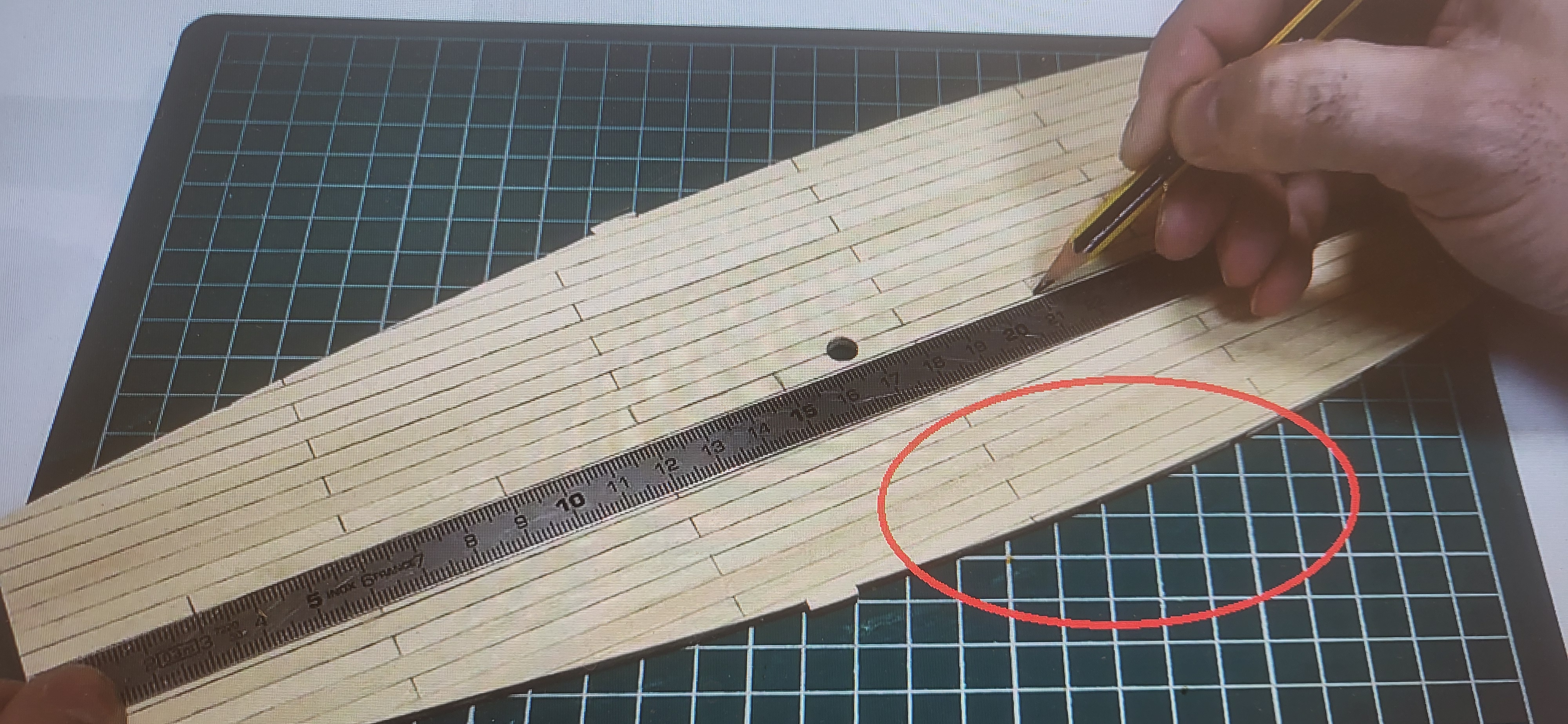 Informacja dla kolejnych początkujacych, znalazłem na oryginalnym filmiku (załącznik) im też brakło ok 1-2 mm z jednej strony. Szkoda, bo trzeba niestety dokleić deseczkę w te miejsce, pewnie jakby wszystkie były innej szerokości lepiej by się spasowało. Zobaczymy jak wyjdzie z drugiej strony. Można dokładniej wyliczyć i wszystkie podszlifować na starcie lub dokupić o innej szerokości. Mnie na początek nie przeszkadza, większe problemy będą dalej