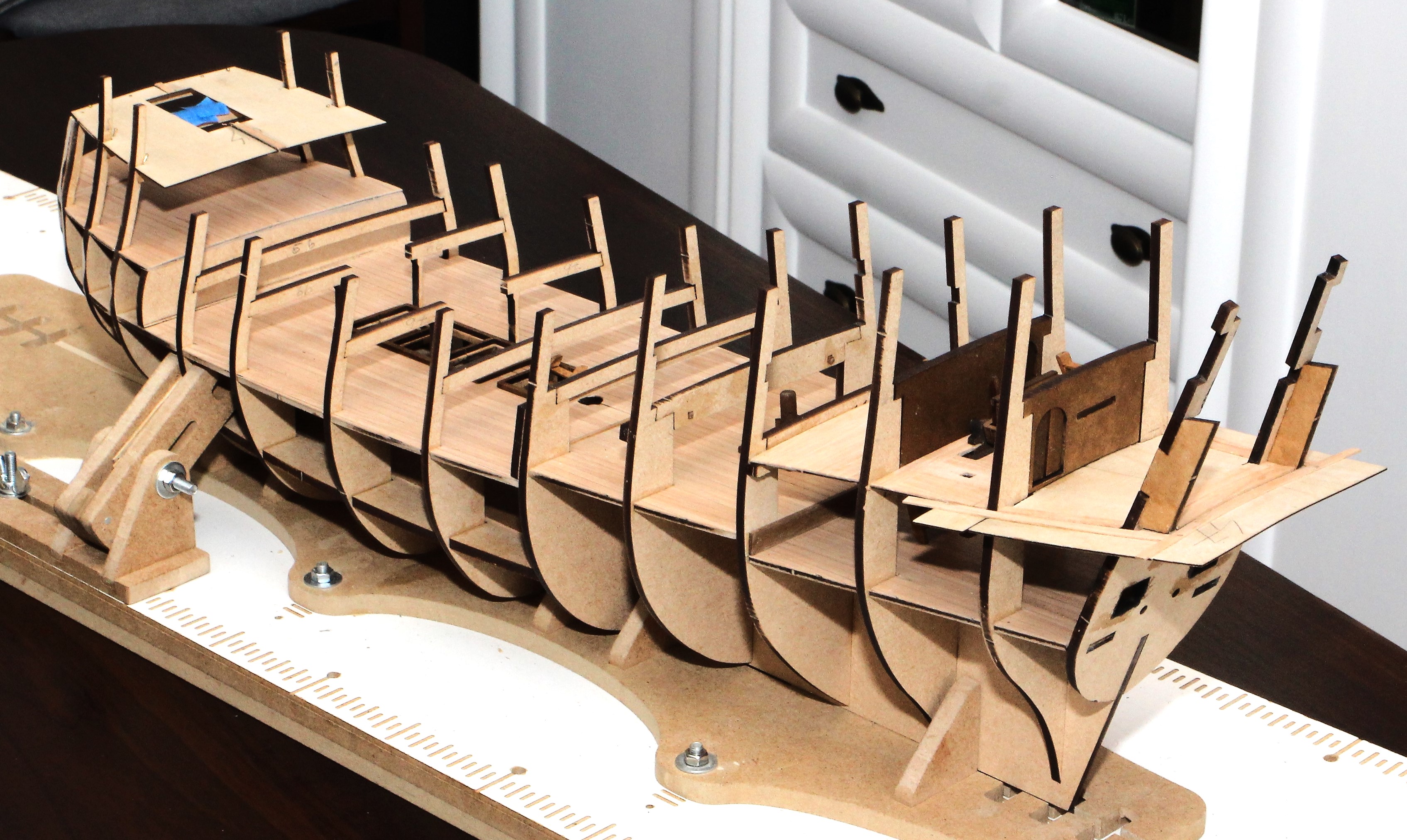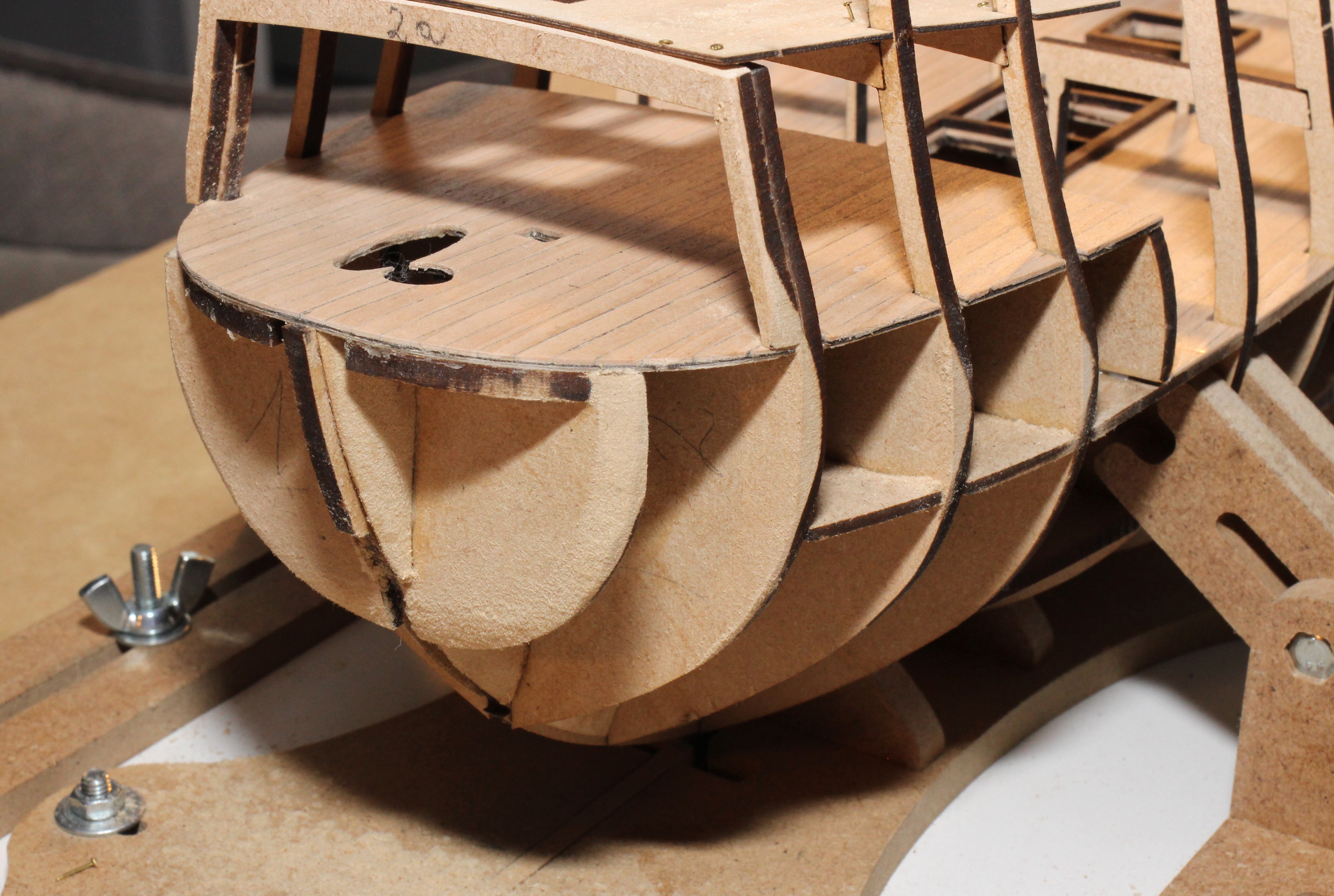 Można go zniwelować dobrze rozcieńczonym wikolem. Frezowana podstawka to płyta mdf o grubości 20 mm, dodano też kolumny mosiężne. Amati zakłada i podaje, że model powinien zostać wykonany w czasie 200 godzin.