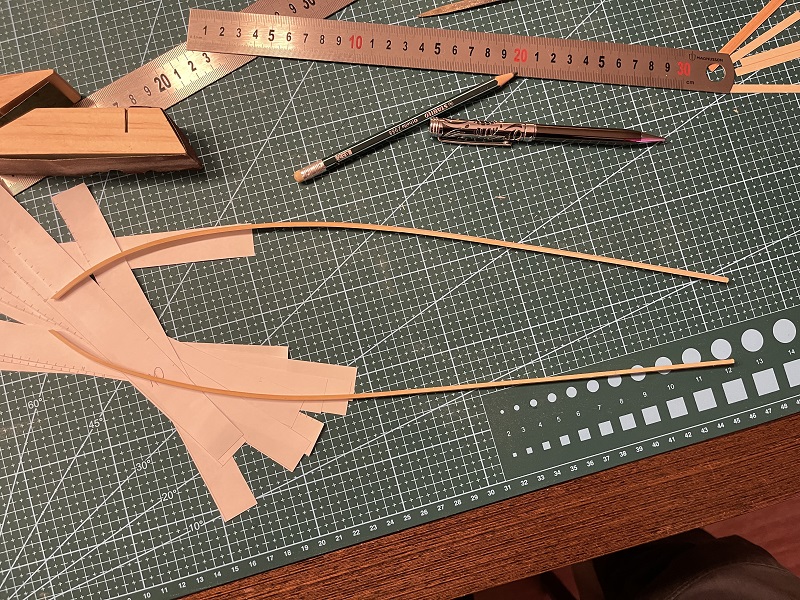 Kolejnym krokiem będzie odeskowanie i przyklejenie pokładu, i tu planuje zrobić to inaczej niż sugeruje instrukcja. Producent zaleca użycie jednolitych listew na całej długości pokładu, i narysowanie linii podziału ołówkiem. Cabelinho w swojej relacji wykazał że listwy nie są idealnie równe, i takie podejście powoduje że przy tak długich listwach gdzieniegdzie pojawiają się szpary. W związku z tym planuje pocięcie listewek pokładu na odcinki 60mm (na takie odcinki listwy miały być poźniej dzielone ołówkiem) i przyklejanie tych małych kawałków. Powinno to zminimalizować ryzyko szpar wynikających z nierównej krawędzi na długości całej listwy.