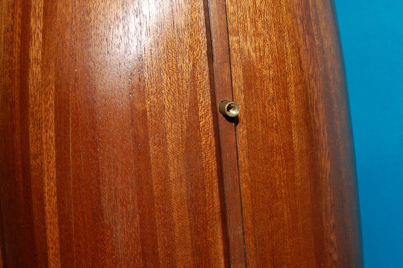 W tej metodzie nie pogrubialiśmy podłużnicy pod nakrętki (tulejki), więc warto sprawdzić (tu przydatna będzie dokumentacja rozrysowanych detali owrężenia) czy nasz rozstaw nie pokrywa się z wręgami (tu jednak trudno będzie utrafić, jeśli tych punktów nie zaznaczyliśmy sobie w trakcie poszywania) lub wzmocnieniami połączeń elementów podłużnicy (będzie lepiej jak tulejka będzie osadzona w "drewnie", niż tak jak w teście).