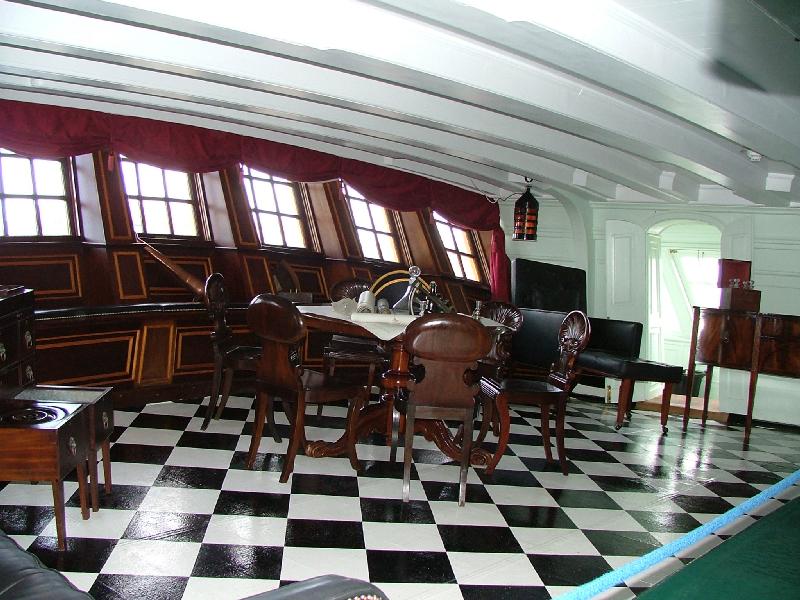 W wersji z 1805 r. pokład w kabinie kapitana i admirała (great cabin - upper deck) pomalowane są w biało-czarną szachownicę /możemy wykonać metodą intarsji/ i jak widać kabiny dzienne są umeblowane.