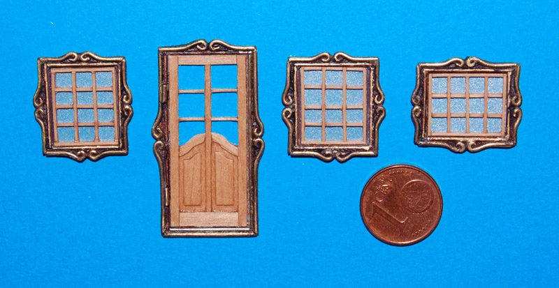 Pierwsze okna wykonałem wzorując się na oknach z zestawu (metalowe odlewy), nieco je modyfikując - zrobiłem cieńsze.